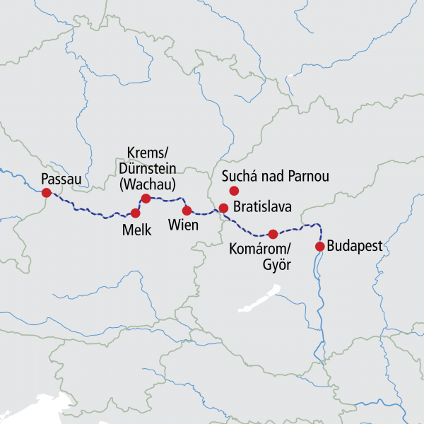 Anreise nach Passau und Bordgang. Um 20:00 Uhr legt die MS VIVA TWO mit Kurs auf die Wachau ab.