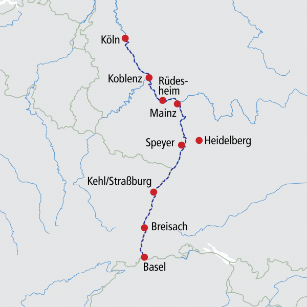 Anreise nach Köln, wo Sie am Nachmittag eintreffen und an Bord gehen. Nachdem Sie sich in Ihren Kabinen eingerichtet haben, legt die A-ROSA SILVA um 18:00 Uhr mit Kurs auf Rüdesheim ab.